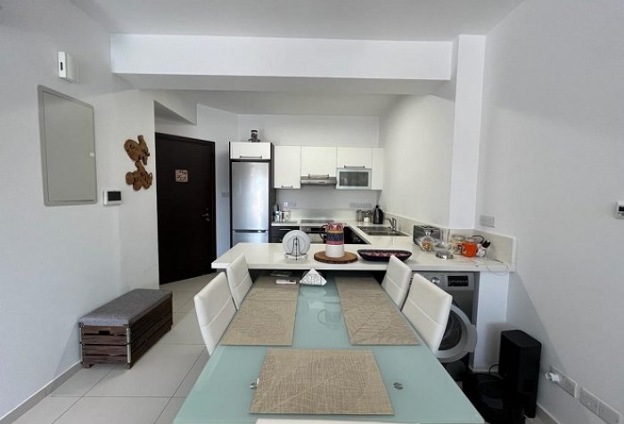 Project Features: This apartment is situated in the exclusive development in one of the most popular areas of Paphos - Universal. The project is located within short distance to all the amenities: schools and universities, restaurants, nightlife, banks, supermarkets and Kings Avenue Mall. This project offers a wealth of services and facilities which include: GYM, outdoor swimming pool available for the residents, kids playground.   Property Features: The property has an open plan living/dining areas and a spacious fully equipped kitchen. Patio doors from the living area lead out to a good sized covered veranda offering views to the project. There are 3 bedrooms with fitted wardrobes, master bedroom has en-suite facilities and family bathroom concludes the property. Private parking is available on site. The apartment is in an excellent condition, sold furnished and equipped with high quality appliances.   LOCATION 3km to Beaches 2.8km to Paphos Harbour