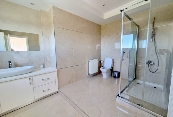 This villa boasts a modern interior adorned with high-end furnishings, creating an atmosphere of sophistication and comfort. The spacious living areas are designed for both relaxation and entertainment, making it the perfect retreat for family and friends.