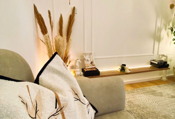 Fully Furnished: Master bedroom with wardrobe & décor, second bedroom ready for your personal touch.